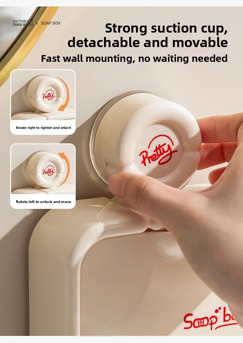 This soap holder features a suction cup design, allowing for easy installation without the need for drilling holes.